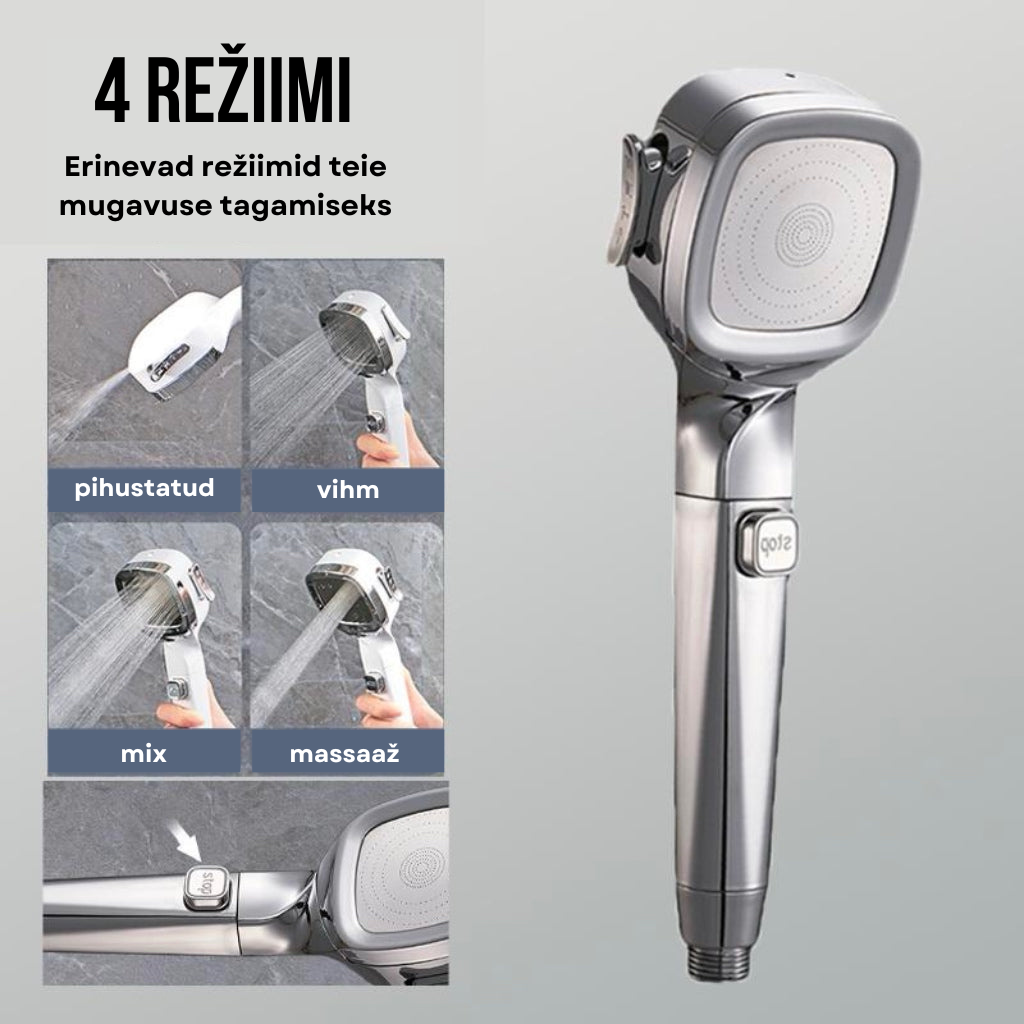 💆♂️ Ülim dušikogemus: 4 režiimi - tugev voog, vihmaefekt, massaaž ja juga - muudavad iga duši eriliseks! Veejuga on õrn, kuid intensiivne, andes nahale meeldiva tunde. 🛁💦
