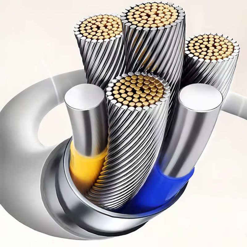 🔄 4-in-1 disain – üks kaabel, mis sisaldab USB-A, Lightning ja topelt-USB-C ühendusi, sobib erinevatele seadmetele.