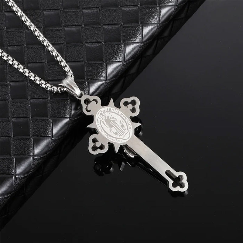 Püha Benedictuse kaitseripats – sümboliseerib jõudu, rahu ja vaimset kaitset. Iga medaljoni küljele graveeritud täht tähistab ladina palvet kurja vastu, toimides talismanina.