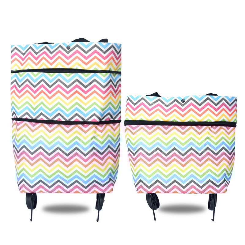Kui kotti avada, muutub see hetkega ruumikaks ostukotiks. Kui pead rohkem kaupa kaasa võtma, voldi see lahti – ja see muutub mugavaks ratastega käruks.