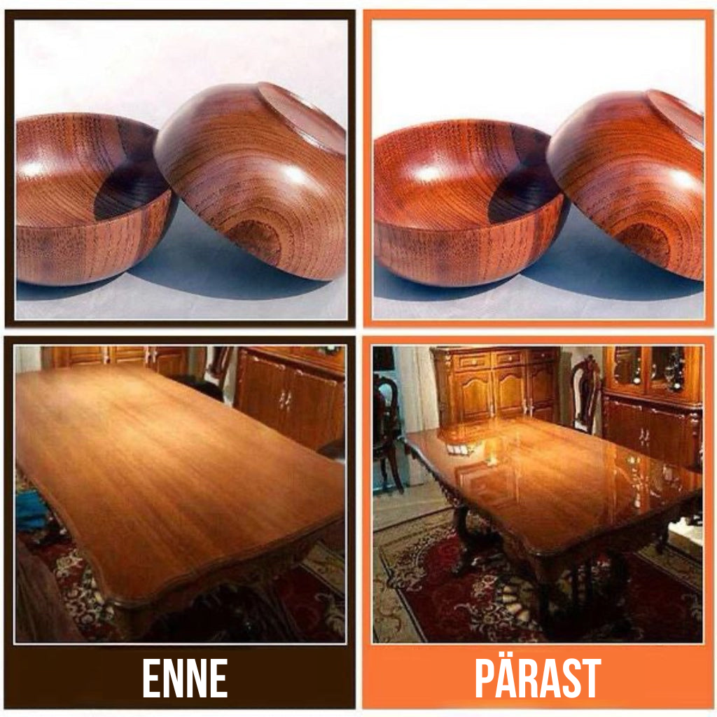 - VANADE PUIDUDE UUSIMINE: See toode eemaldab rasva, mustuse ja kulumise värvipinnalt. Seda võib ohutult kasutada mesilasvaha ja töödeldud puidust mööblile. Puhastab ja poleerib ka puitpõrandaid! Siluge, kandke ja pühkige puiduhooldusvahend ning aastate jooksul kogunenud mustus kaob teie silme eest, andes mööblile uue ilme.