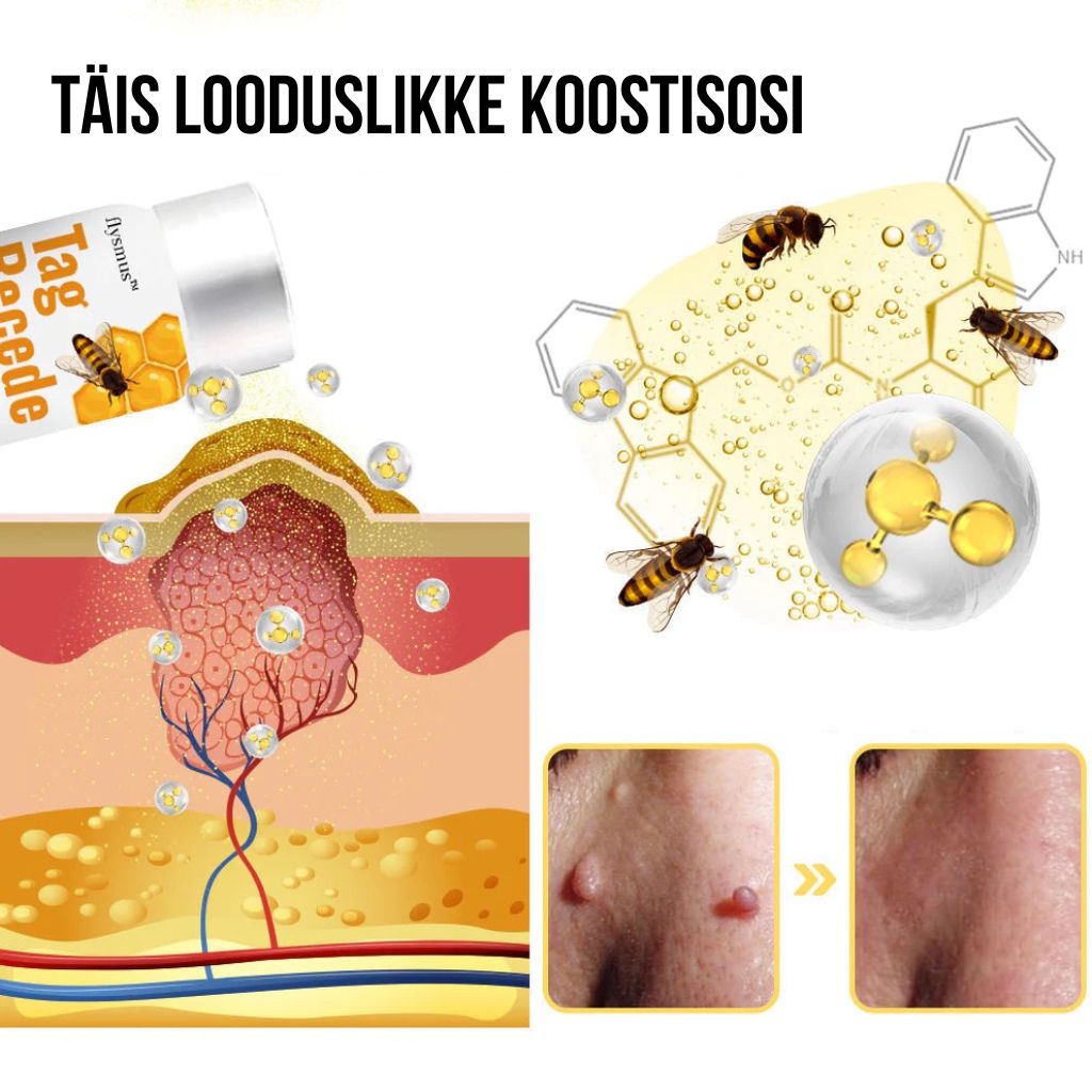 Healing Spray on lahendus, mis kasutab mesilasmürgi võimsaid omadusi, et tõhusalt võidelda paljude nahavigastuste, sealhulgas nahatäppide, sünnimärkide, tüügaste ja plekkide vastu. See täiustatud koostis, mis on rikastatud mesilasmürgist ekstraheeritud aktiivsete ühenditega, lagundab ja eemaldab õrnalt soovimatuid kasvajaid.
