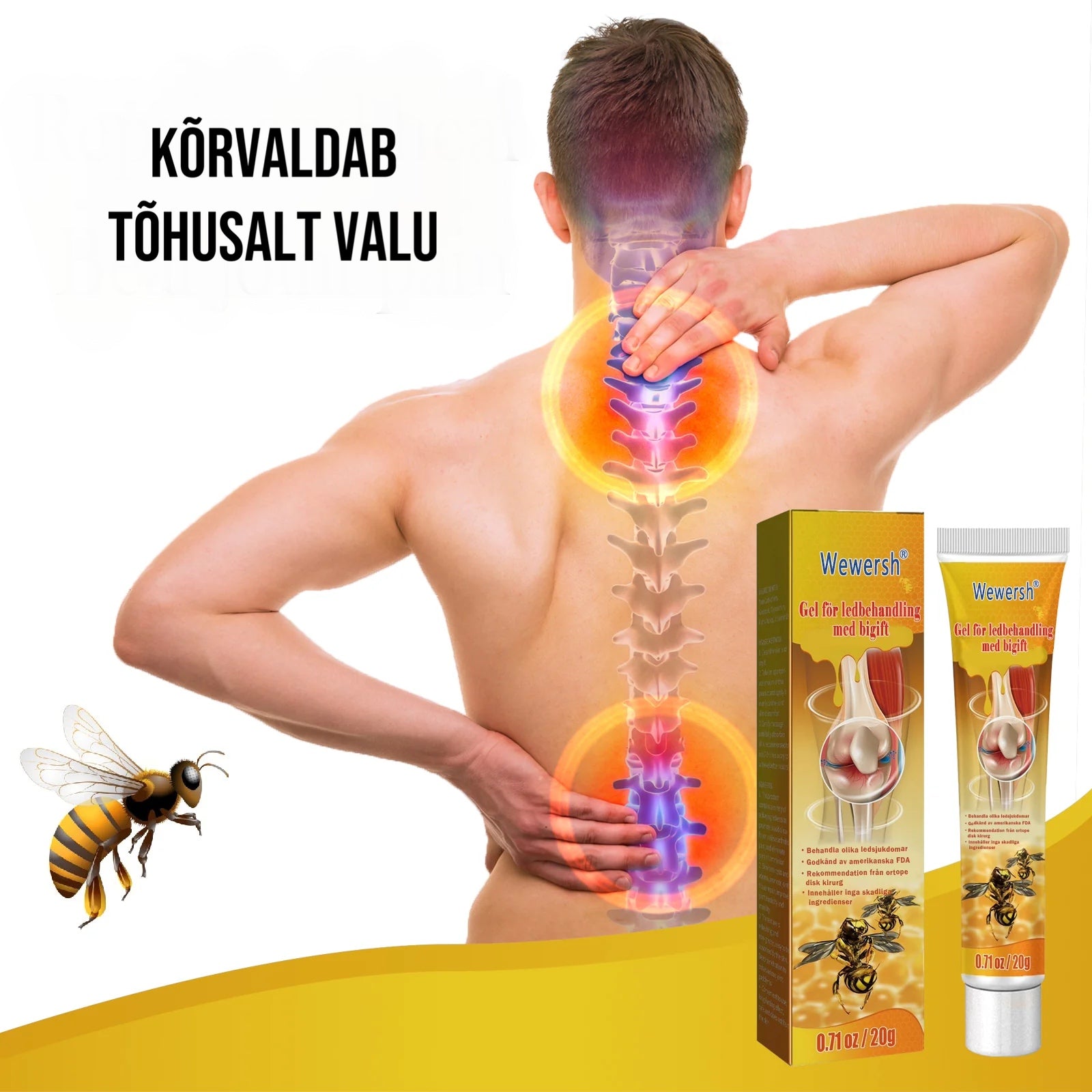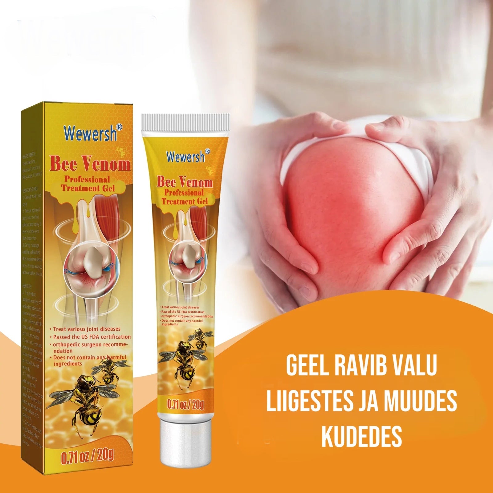 ✔️ Optimaalse toime saavutamiseks kasutage rohke kogus geeli ja laske sellel vähemalt 15 minutit nahal püsida. Mesimürgiga võivad teie liigesed ja nahk tunda end tervena ja nooremana ning te saate nautida aktiivset ja mugavat eluviisi. Üks pakend sisaldab 20 ml geeli.