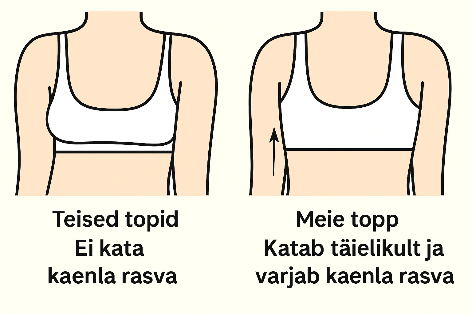 ✔️ Tagasi rinnapiirkonda suunab rasvade liigse kogunemise külgedelt – parandab õiget rühti