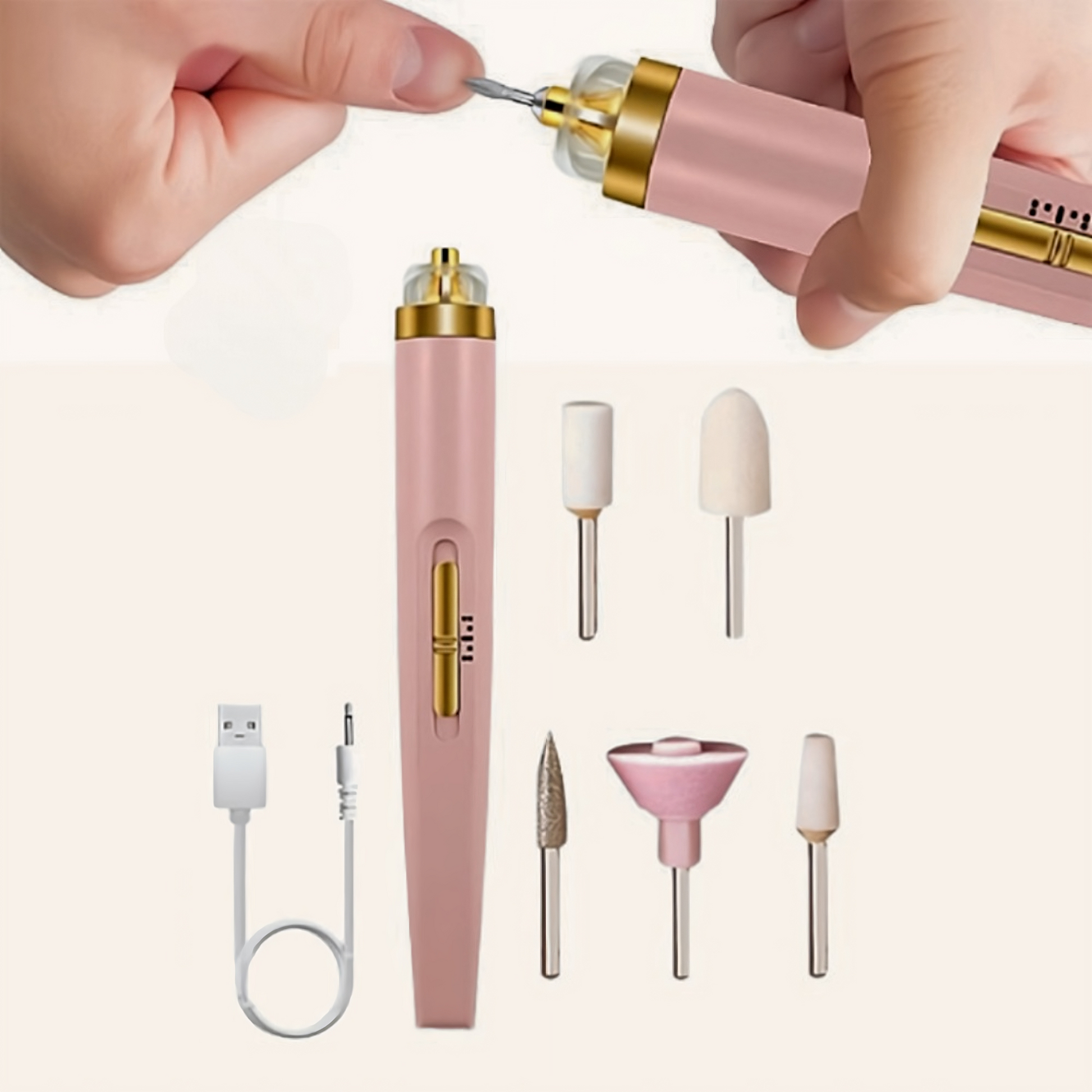 6000-12000 rpm mootoriga ja viie vahetatava freesiotsiku abil on lihtne küüsi poleerida, küünelakki ja -geeli eemaldada ning saavutada kaunis läige. Enam ei ole vaja kallist ja aeganõudvat salongi külastamist.