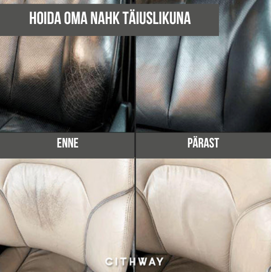 "Cithway™ Leather Repair Gel" aitab parandada kriimustusi, pragusid, põletusauke või rebendeid ja muudab iga nahkeseade taas nagu uus!