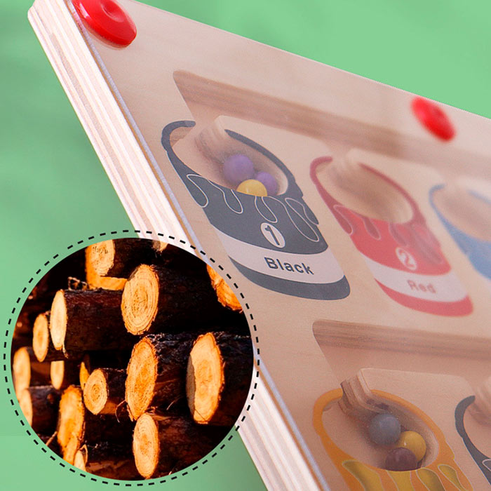 See didaktiline mänguasi sisaldab pulka, millega laps sorteerib värvilisi magnetpalle õigesse lahtrisse!