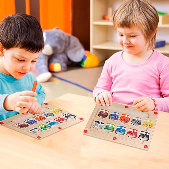 Kasutamine: laps kasutab pulka, et sorteerida värvilised magnetpallid õigesse lahtrisse
