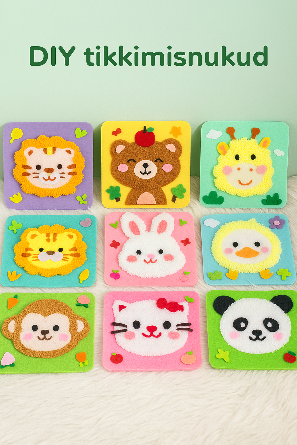 Komplektis on kvaliteetne vill erinevates vĂ€rvides ja ohutud, mittetoksilised tikkimisvahendid â suurepĂ€rane laste loomingulisuse arendamiseks.