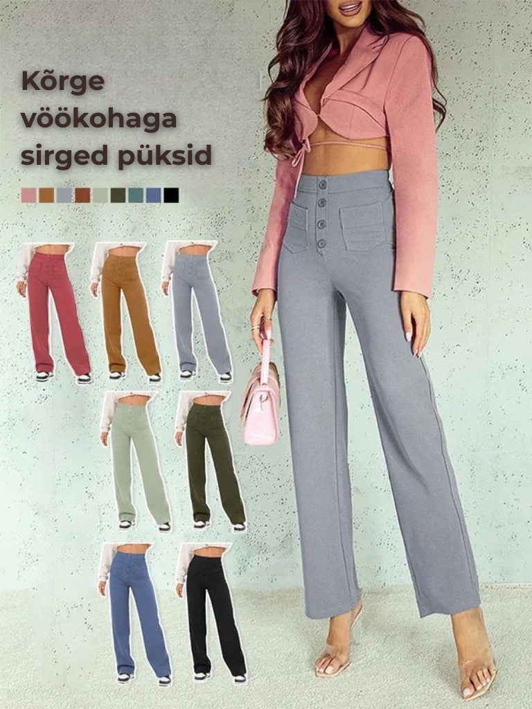 Üksvärvilised vabaaja sirged püksid kõrge vöökohaga