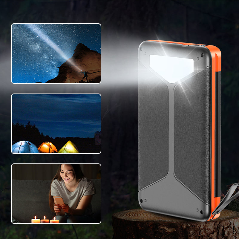 ⚡ Kiire juhtmevaba laadimine: Lihtsalt asetage ühilduv seade laadijale ja see teeb kogu töö. Tänu kiirele USB-C sisendi/väljundi pordile saab päikeseenergiapanka täielikult laadida 6 tunni jooksul 15W laadijaga (ei sisaldu komplektis), valmistades teid kiiresti ette, et uuesti oma seadmeid laadida.