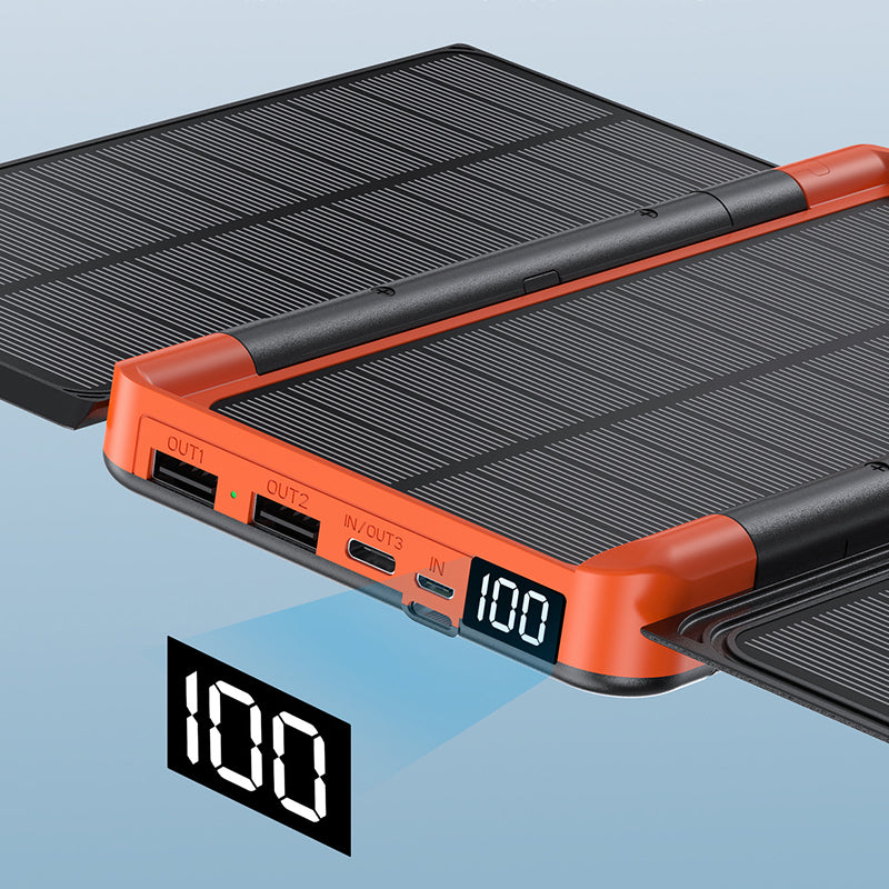 Kolme päikesepaneeliga tagab see päikeseenergia pangaseade usaldusväärse energiaallika, et saaksite oma seadmeid laadida isegi siis, kui olete linnast väljas ja ei sõltu elektrivõrkudest.