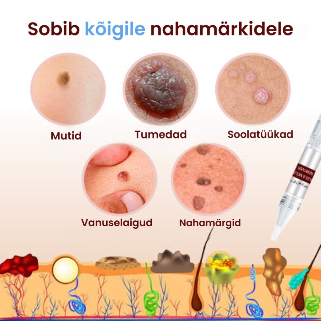 „Olen seda kreemi kasutanud vähem kui nädala. Olen üllatunud tulemustest, see on suurepärane nahamärkide ja tüügaste pinguldamiseks ja järkjärguliseks eemaldamiseks. See toimib imeliselt ja ma ei vaja mingit operatsiooni mind häirivate märkide jaoks!“ - Aleksandra O., Viljandi.